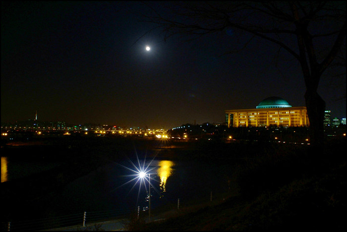 국회.. 한때 자주들락거리던..ㆅ 낮에만가봐서.. 밤에보니 조명받은모습이 너무멋지군요..^^ 한강조명이 저렇게 나 화려했던가요..