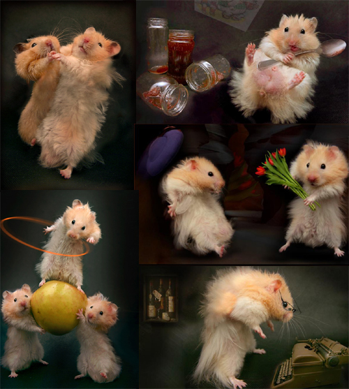 (시계방향으로 왈츠추는 쥐커플, 딸기잼퍼먹는 쥐, 꽃다발들고 프로포즈하는 쥐커플, 안경쓰고 타이프치는 쥐, 3인조 서커스단쥐)